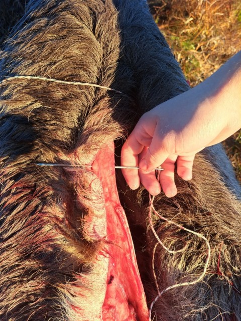 Nålen er tiltenkt brukt til å sy igjen buken på storvilt som er vommet ut i felt. Man kan tre hyssing på nålen hjemme og plassere den i transportsylinderen. Etter vomming tar man frem nålen og tråkler igjen åpningene i skinnet. På denne måten unngår man unødig forurensing av bukhulen.
