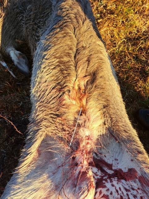 Nålen er tiltenkt brukt til å sy igjen buken på storvilt som er vommet ut i felt. Man kan tre hyssing på nålen hjemme og plassere den i transportsylinderen. Etter vomming tar man frem nålen og tråkler igjen åpningene i skinnet. På denne måten unngår man unødig forurensing av bukhulen.